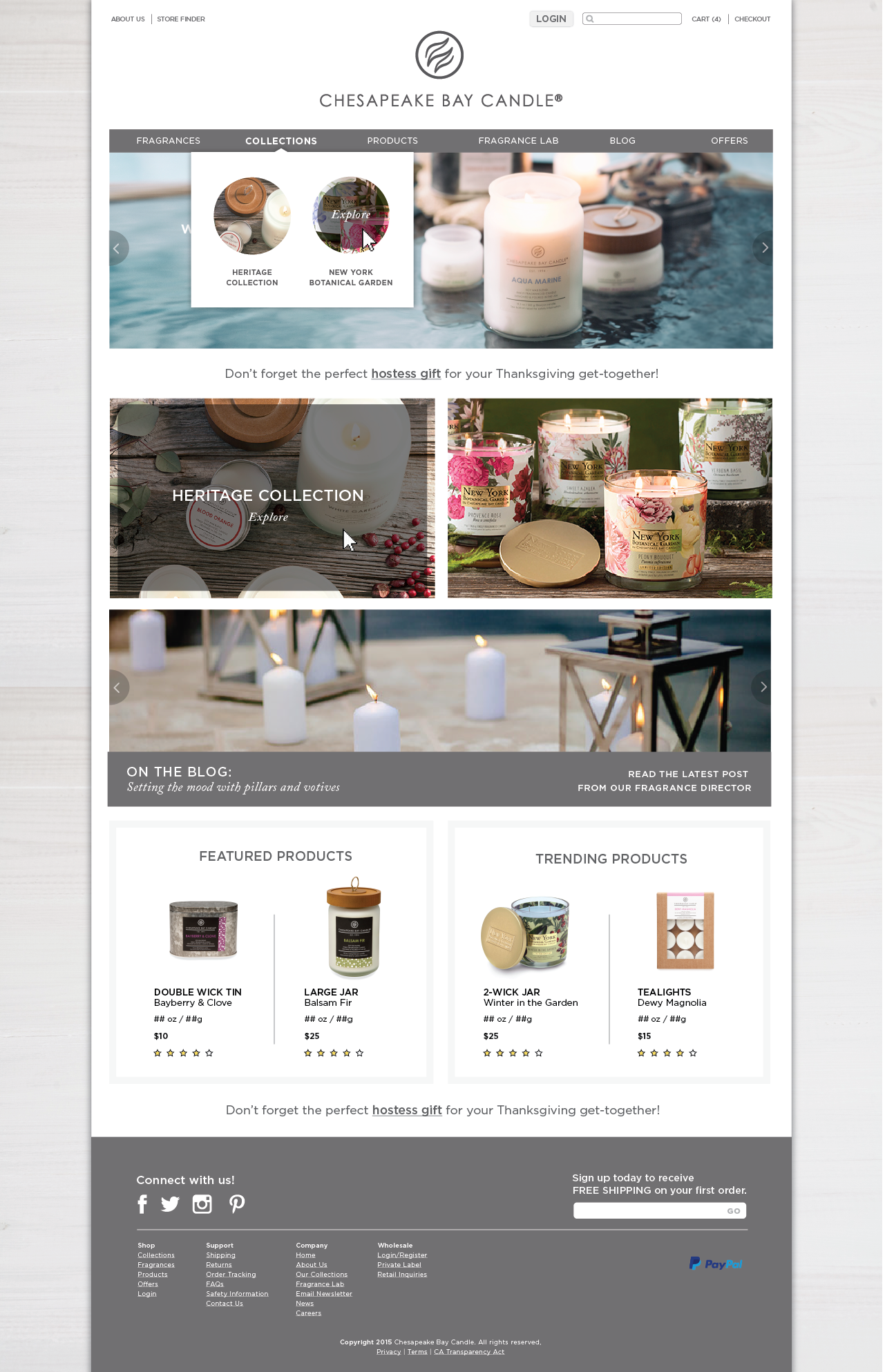 Home page design created for launch of candle company's responsive e-comm site.